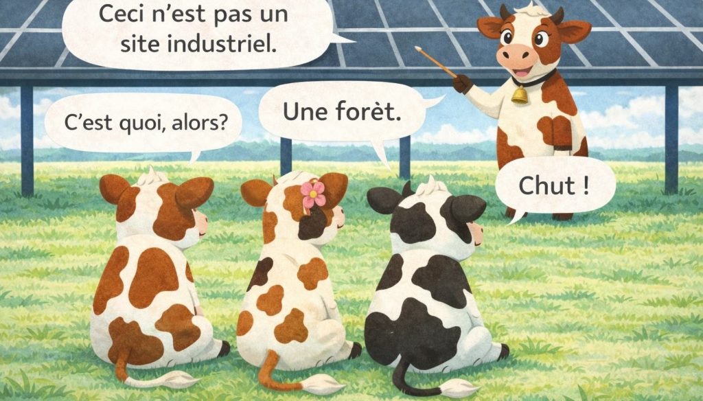 Il nous a été dit que ce terrain « idéal » pour y implanter des panneaux agrivoltaïques a été repéré par satellite…